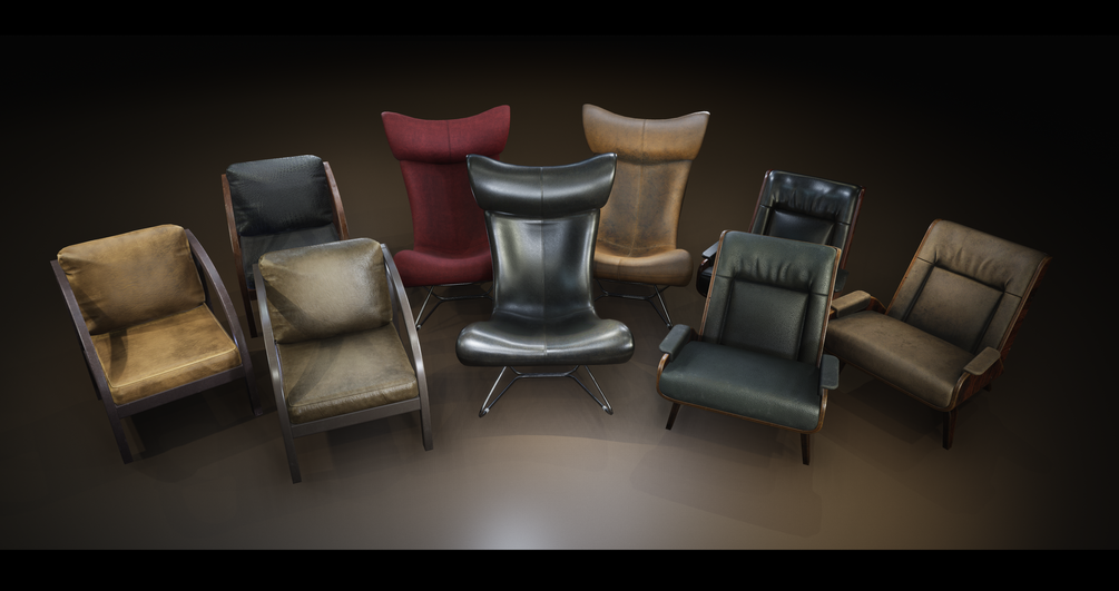 Chairs pack game ready lowpoly models for your game or visualization. Three variants good quality chairs with 3 skins for each one.